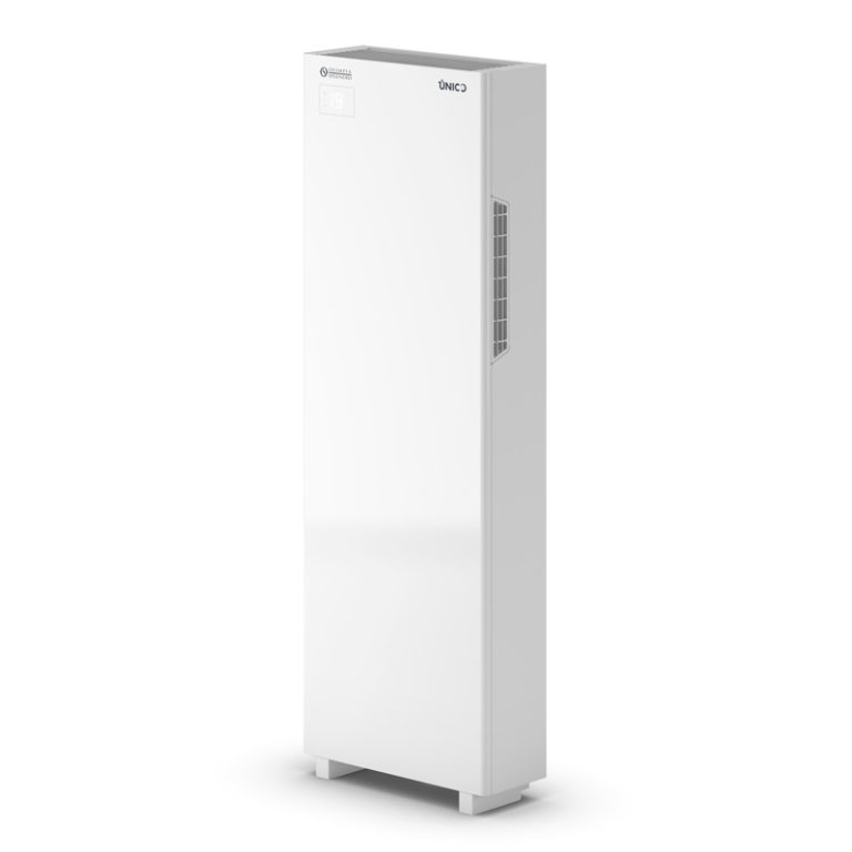 Das feste Klimagerät ohne Außeneinheit eignet sich mit seiner vertikalen Kompaktbauweise auch für die Installation in kleinen Räumen. Unico Tower wurde für die ganzjährige Verwendung in jeder Art von Wohnumgebung sowie kleinen Geschäftsräumen entwickelt. Die Betriebsmodi Kühlen, Entfeuchten und Heizen lassen sich einfach über das hinterleuchtete Touch-Display, die Fernbedienung oder die Smartphone-App (optional) einstellen.
